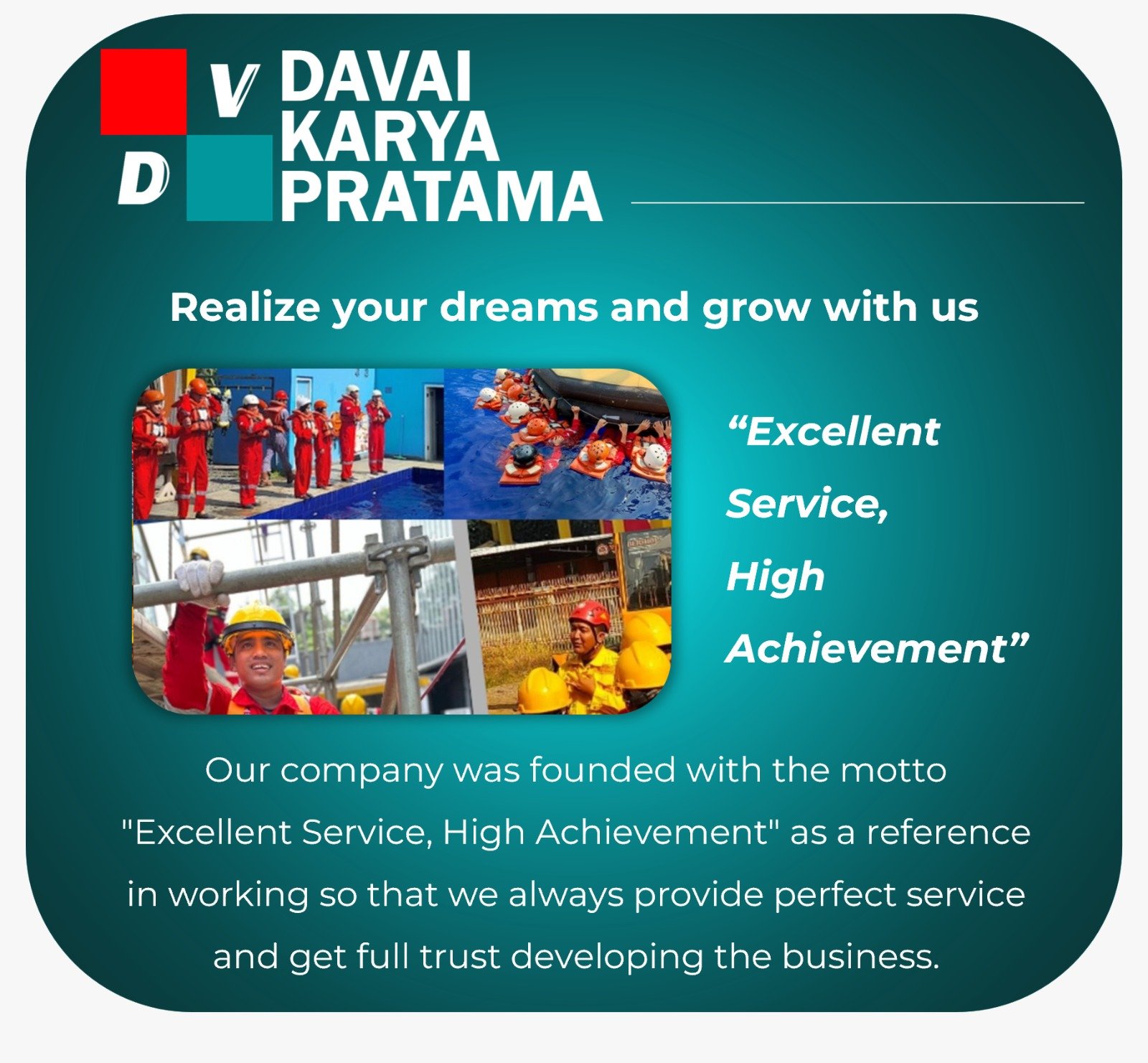 We are proud to partner with PT Davai Karya Pratama, an Indonesian company specializing in occupational health and safety (OHS) training, certification, and inspection services.entrust us with: